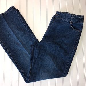 New Additions maternity ladies size Large blue jeans pre-owned excellent condition. 99% Cotton, 1% Spandex. Elastic at back. W-18, R-12.75, I-30. Shipped with USPS Priority Mail.
