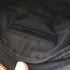 Is brand new with tags and features studded detail on the bottom. Has an adjustable strap and a long fringe on the back zipper. Include a small pocket on the back and a small pocket on the interior. Ther are a few scratches on the zipper and hardware from storage but has never been used.