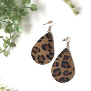 NWT leopard print black brown leather earrings