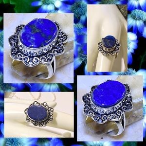 •Lovely• Lapis Lazuli Gemstone Handmade Halo Ring