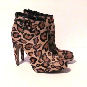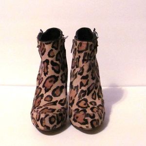 Sam Edelman Calf Fur Leopard Print Ankle Booties