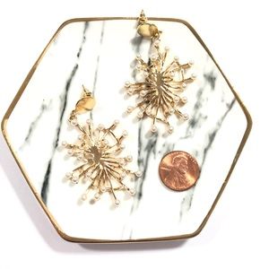 This pair of earrings is a sure fire way to get a compliment. They are a gold explosion of pearls and have a stud dangle at the fixture. They can be dressed up or down and absolutely stunning.