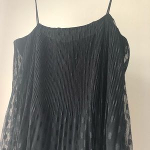 Such a cute dress. I wore it once for a wedding and got tons of compliments. Zara Black on Black polka dots. Chiffon over layer with polyester lining. Spaghetti straps. Size XS. Smoke and pet free home. Worn once, steam cleaned, in like new condition.