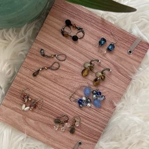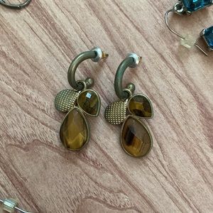 Lot of 7 earrings mostly LOFT but a few are other brands all are fish hook dangles besides on button straight back earrings! Beautiful faux gems and beads in all tones green, earth tones, turquoise& purples!