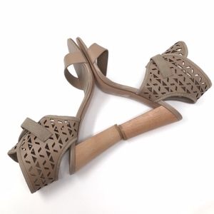 Charles David Taupe Leather Laser Cut Juno Sandals