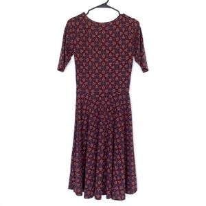 LuLaRoe Nicole Dress Women Size Small Red Blue Yellow Diamond Print Short Sleeve Fit Flare. Excellent condition. Soft, comfortable fabric. Pullover style.