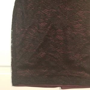 Black lace with purple lining. Bustier-inspired top with light padding. Adjustable straps. Size 4.