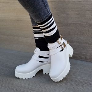 Chunky 90s Grunge White Ankle Spring Boots
