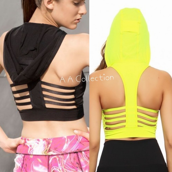 This sports bra features sweat-fighting fabric, all-way stretch construction, removable cups, and a super cool hoodie. Active wear, yoga