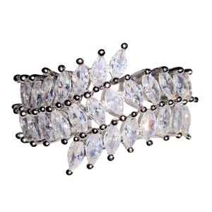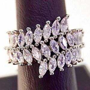 925 Silver & White Sapphire 3-Layer Bling Ring: waves of natural white sapphires embedded in 925 silver. Even more gorgeous in person!