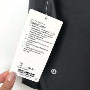 NWT Lululemon Coastal Tank. Style: LW1APZS DKAS. Brand new and in perfect condition! No longer sold in stores or online. No trades, no external sites, but I do 10% discounts on bundles of 3+ items! Feel free to ask questions 😊