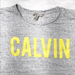 Amazingly comfortable Calvin Klein grey t-shirt with yellow writing.