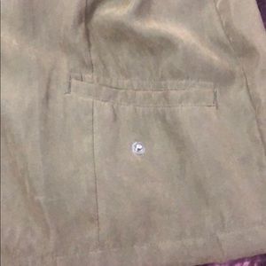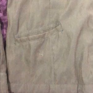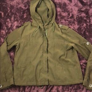 Green hooded jacket. Missing a button on the pocket but it’s not really noticeable