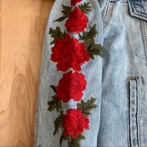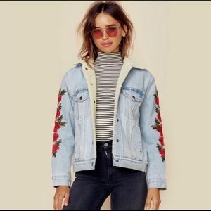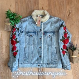 ✅SOLD Levi’s Sherpa Rose Embroidered Denim Jacket