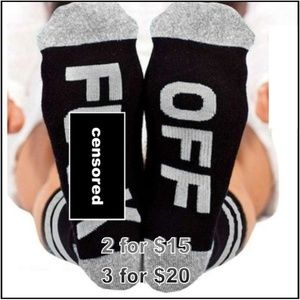 Socks say fuck off on bottom