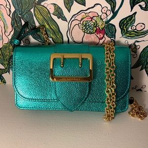 NWT Blue green Burberry mini ! Super cute !!! Perfect gift for Easter/Graduation. It Will fit an iPhone XS and 5s I assume an Xr as well (See pics) Perfect for going out or to add a little extra to your daily outfit :) slight scratches on hardware it was purchased like that . 🤷🏼♀️