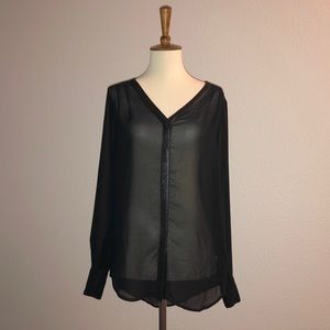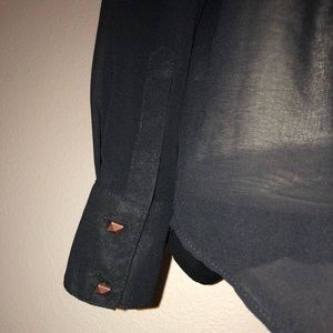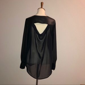 Rock & Republic Black V-Neck Open Back Button Down Sheer Blouse Top. Size XS.