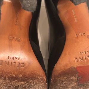 Gorgeous Suede and Leather Celine’s. These are a very dominant heel that are great with a pencil suit, jeans or leather pants. 🖤🖤🖤 Check out my other listings. Cleaning out my shoe closet.