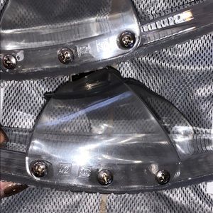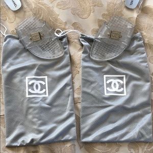 Clear Chanel sandals with silver logo. Logo is also on the side of the sandal. Chanel size 42 but fits like a US 10 or maybe 10.5. Includes dust bags.