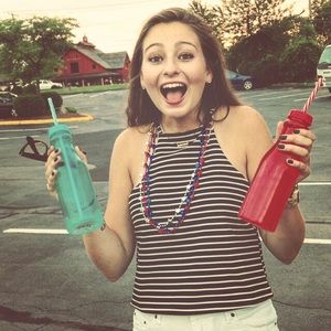 navy blue tank with white stripes