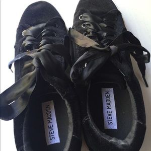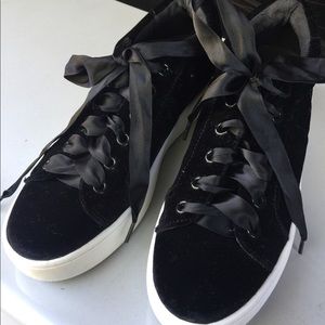 A velvet surface makes these sneakers stylish, chic and cute! The plush takes the sneaker in a new opulent direction, perfectly complemented by shiny satin ribbon laces. Worn 1-2x, just some light wear to the sole, still in excellent condition.
