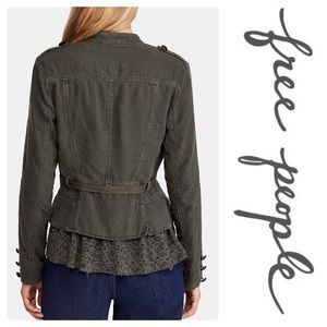 Free People Emilia Lace-Trim Tie-Waist Jacket Moss