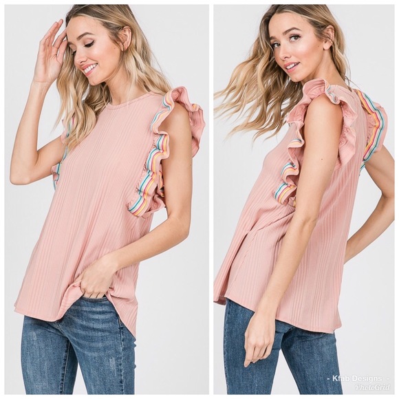 π LAST 1! Blush Ribbed Rainbow π Ruffle Top!