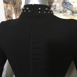 NWOT! Stunning and Super Sexy Bodycon Dress. Color: Black with silver studs embellishments. Size Medium, but it runs small and will fit XS/S. It has stretch, but also fits very snug. Looks absolutely amazing! This dress does not need much accessories as this dress is your accessory! Just pair it up with tall boots or your favorite heels. This is definitely not your typical little black dress. It’s a statement maker! Purchased at a European boutique, but it’s too tight for me. Never been worn.
