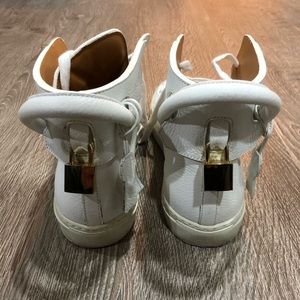 Authentic Buscemi gold padlock hi-top sneakers men’s Euro size 40, US 7. Fits women’s size 8.5-9. Preowned, in good condition. No trades
