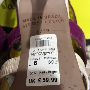 River Island heeled sandals red cream and purple