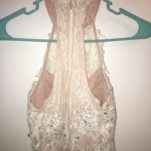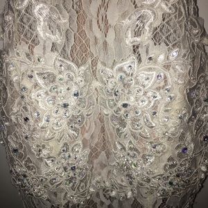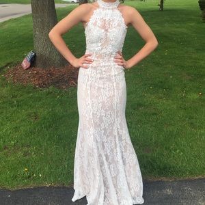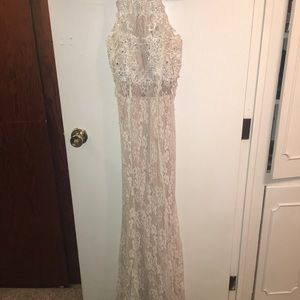 White, sparkly, lace prom dress. Worn less than 5 hours and in perfect condition. Built in bra. Nude lining underneath.