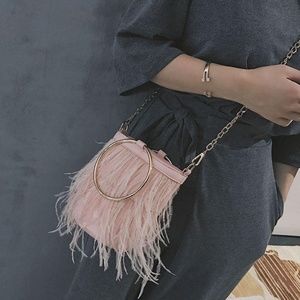 NEW Pink Faux Ostrich Feather Clutch Ring Bag