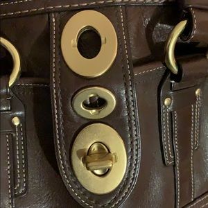 Coach satchel chocolate leather brown handbag with gold hardware.