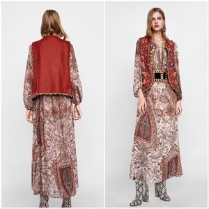 Beautiful beautiful beautiful!! Red velvet with intricate beading and embroidery throughout. Perfect over a flowy boho dress and boots. NWT