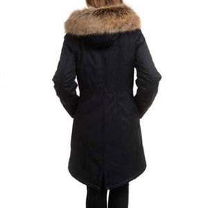 Faux Fur Lined Hood with Detachable Fur Trim at Edge