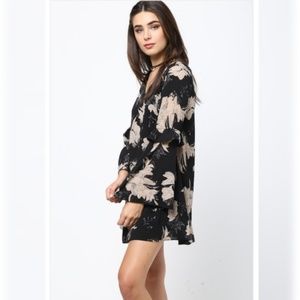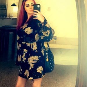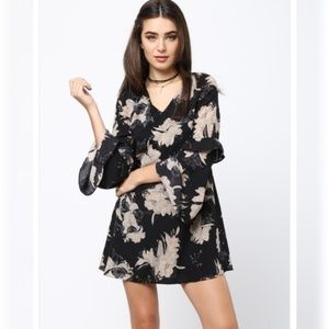 Black and taupe floral ruffle sleeve shift dress Small S Large L