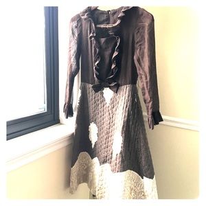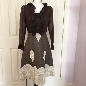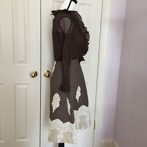 Victorian vintage ruffle bow quilt brown dress