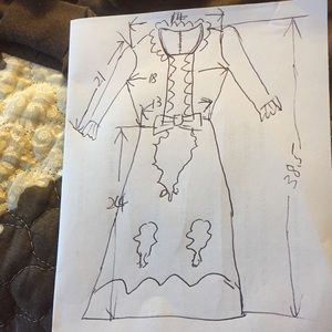 @musicmaniac1995 waist to bottom hem = 15.5 inches. Length = 39.5 in. Waist = 13.5 inch.