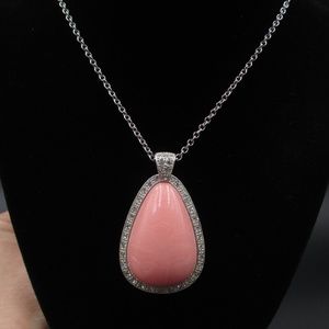 22" Silver Tone Chain & Faux Pink Stone Necklace