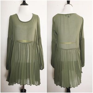 3/$10 Lulus AIM to Pleats Olive Babydoll Dress