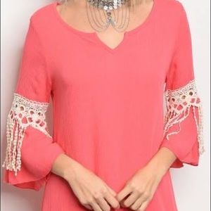 🆕⭐️ Coral Crochet Sleeve Trim Dress