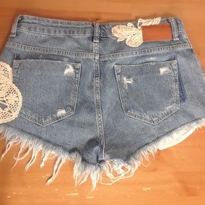 Zara Distressed Crochet Denim Shorts Size 4