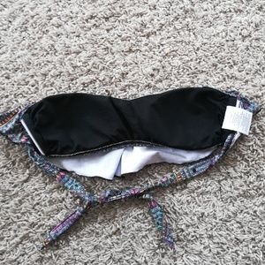 Gorgeous O'Neill bikini top, style Venice Beach Ruffle Bandeau. Adjustable tie at back, has removable pads in bust area. There are loops if you wanted to add straps (it does not come with any).