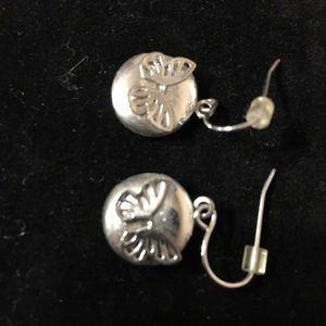 One set of all silver, circular disk earrings with small butterflies on top and one set of two layer black and silver cut out butterfly earrings.