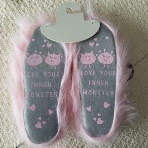 NWT pink fuzzy monster slippers M 7/8