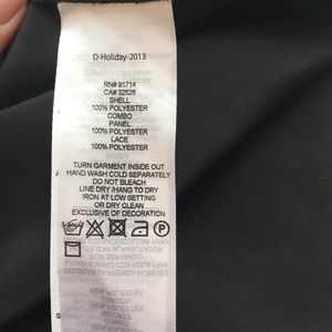 Incredible black lace top, perfect under a blazer for work or out for the night! It features a shear neckline with beautiful lace detail across bust. It's a silky fabric and has a scooped hemline in the front and back. It was only worn a few times, still in excellent condition! 100% Polyester, hand wash.
