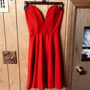 Red Lulus strapless flare dress
