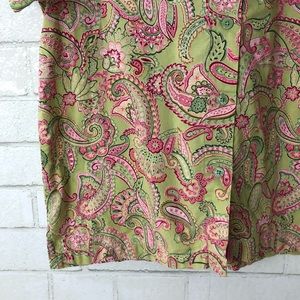 Green and Pink Paisley Print Short Sleeve Button Up
