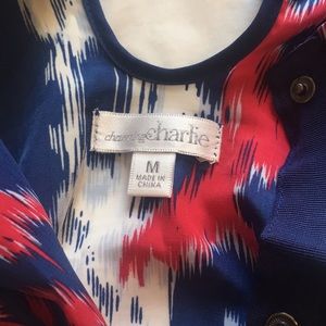 Red white and blue dress with snap buttons above waist and faux button detail down the rest. Great condition
