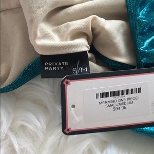 PRIVATE PARTY brand Mermaid graphic blue teal shimmer shine one piece bikini.